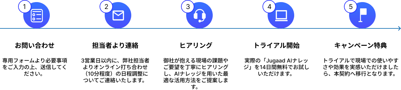 対象企業: 期間内に新規で「Jugaad AIナレッジ」にお申し込みいただき、本契約に至った先着30社様